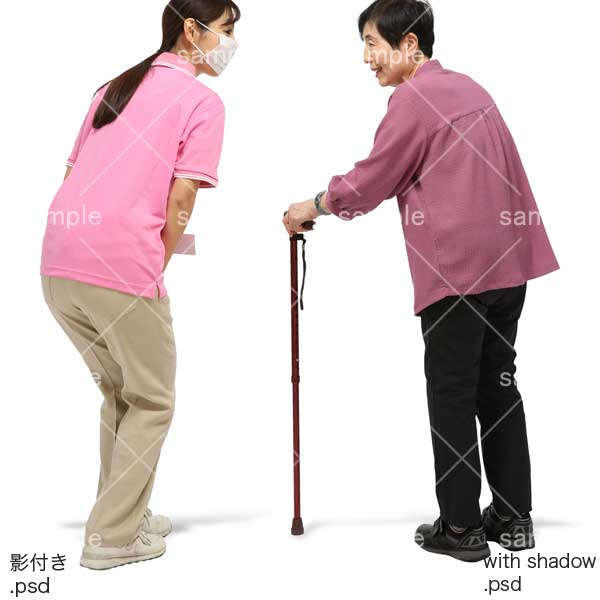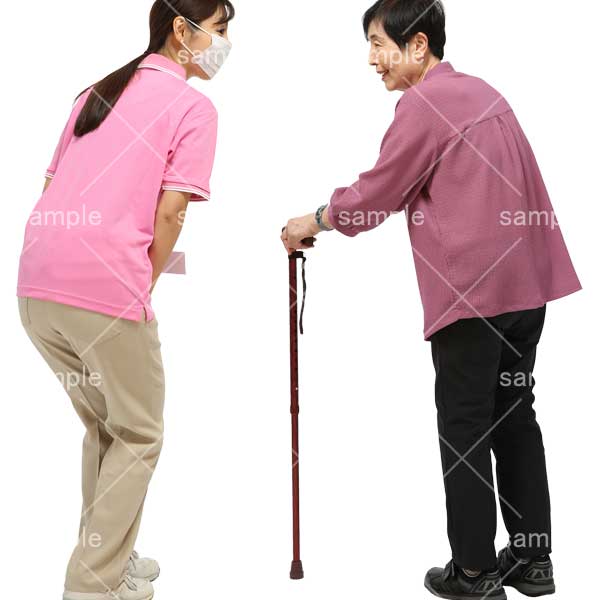 251106介護、女性、杖、介護スタッフ、老人ホーム、シニア、話す、マスク、杖、おばあさん、Woman, walking stick, care staff, nursing home, senior, talking, mask, walking stick, grandmother