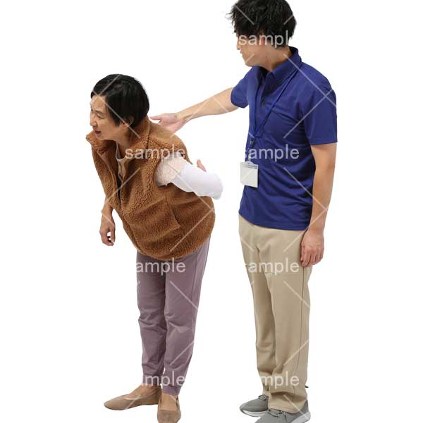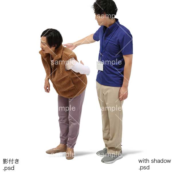 251106介護、杖、介護スタッフ、老人ホーム、シニア、話す、男性、女性、おばあさん、Cane, care staff, nursing home, senior, talking, man, woman, grandmother