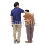 251106介護、杖、介護スタッフ、老人ホーム、シニア、話す、男性、女性、おばあさん、Cane, care staff, nursing home, senior, talking, man, woman, grandmother