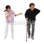 251106介護、杖、介護スタッフ、老人ホーム、シニア、話す、男性、女性、おばあさん、Cane, care staff, nursing home, senior, talking, man, woman, grandmother