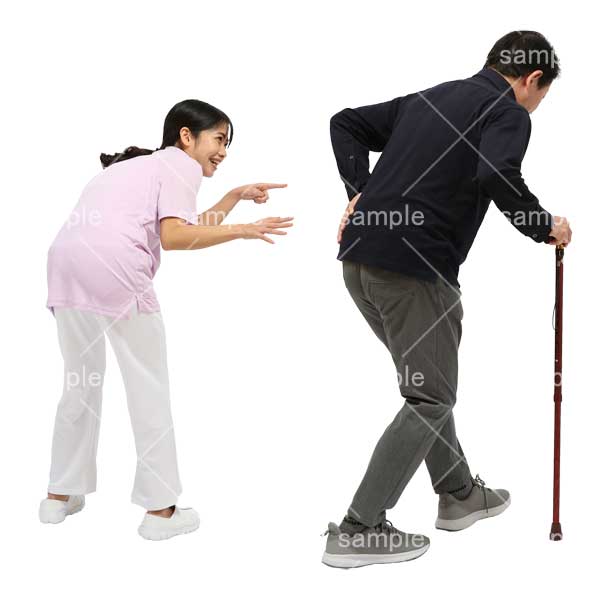 251106介護、杖、介護スタッフ、老人ホーム、シニア、男性、女性、杖、歩く、walking stick, care staff, nursing home, senior, man, woman, walking stick, walking