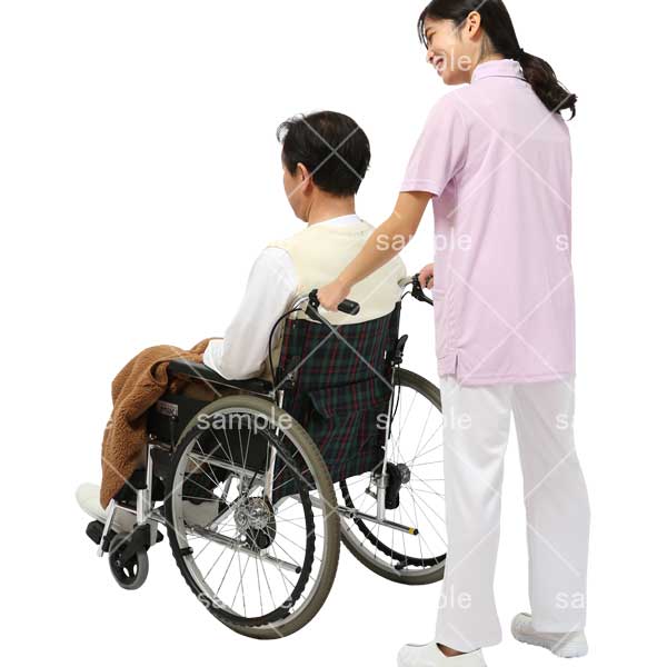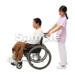 251106介護、介護スタッフ、老人ホーム、シニア、車椅子、話す、男性、女性、おじいさん、Nursing home, senior, wheelchair, talking, man, woman, grandfather