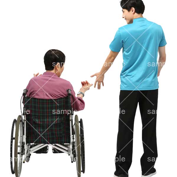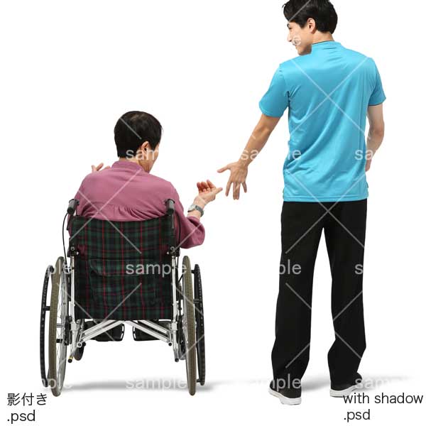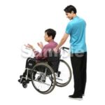 251106介護、介護スタッフ、老人ホーム、シニア、車椅子、話す、男性、女性、おばあさん、Care staff, nursing home, senior, wheelchair, talking, man, woman, grandmother