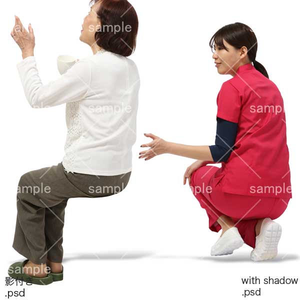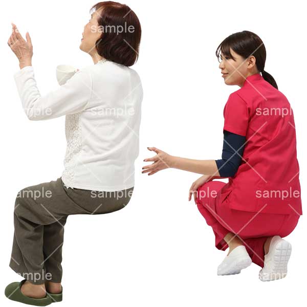 251106介護、介護スタッフ、老人ホーム、シニア、話す、女性、おばあさん、座る、スリッパ、Care staff, nursing home, senior, talking, woman, grandmother, sitting, slippers