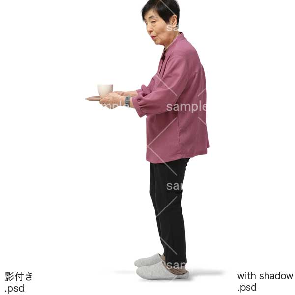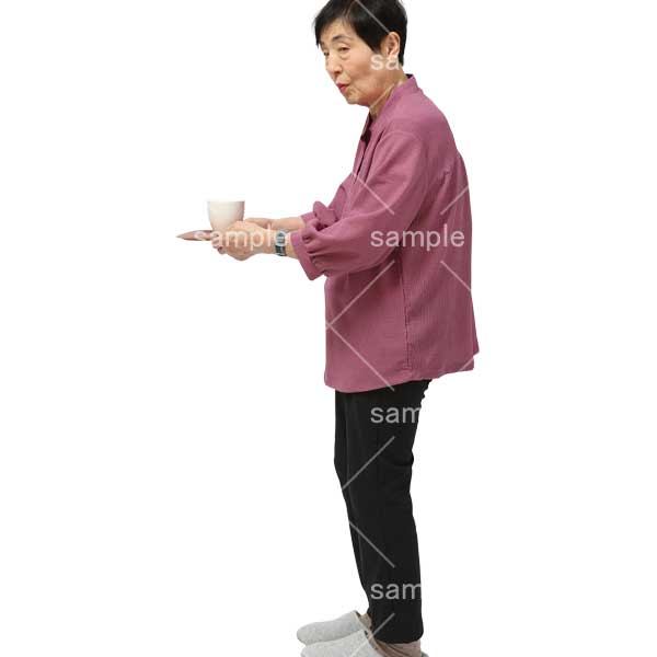 251106介護、老人ホーム、シニア、女性、おばあさん、立つ、食事、トレー、Nursing home, senior, woman, grandmother, standing, eating, tray