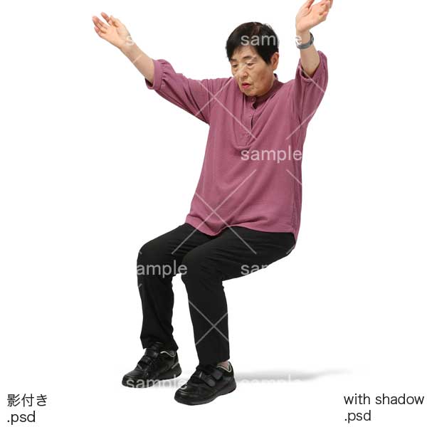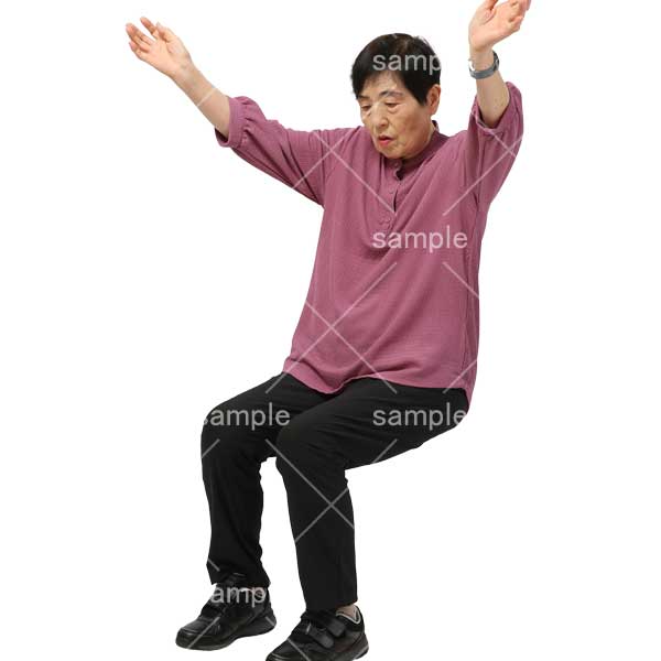 251106介護、老人ホーム、シニア、座る、体操、長手を上げる、おばあさん、女性、Nursing home, senior, sitting, exercise, raising arms, grandmother, woman