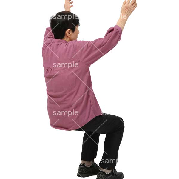 251106介護、老人ホーム、シニア、座る、体操、長手を上げる、おばあさん、女性、Nursing home, senior, sitting, exercise, raising arms, grandmother, woman