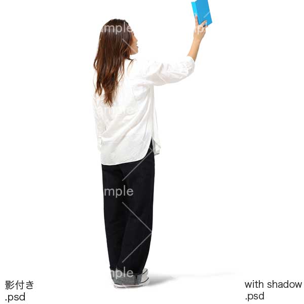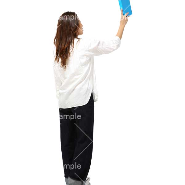 250909動作、日本人、女性、ロングヘアー、デニム、ジーンズ、白色、図書館、本、本屋、本棚、Movement, Japanese, woman, long hair, denim, jeans, white, library, book, bookstore, bookshelf
