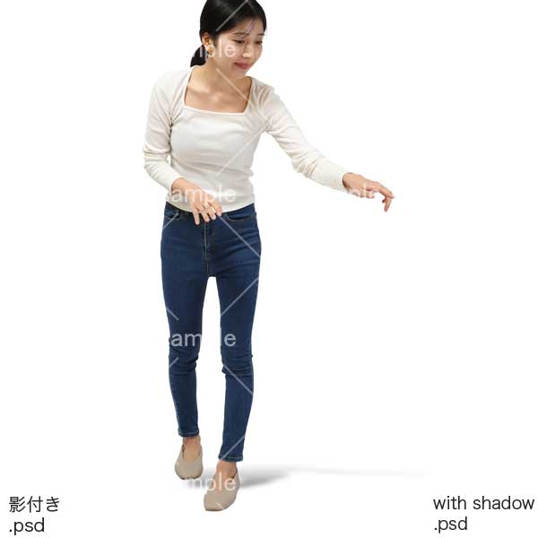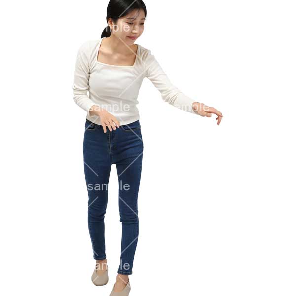 250909動作、日本人、女性、デニム、ジーンズ、スキニー、細身、作業する、手を出す、Working, Japanese, woman, denim, jeans, skinny, slender, working, putting out hands