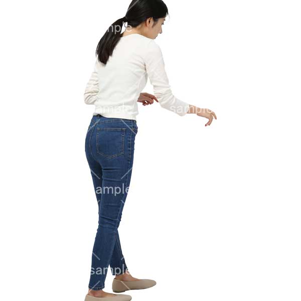 250909動作、日本人、女性、デニム、ジーンズ、スキニー、細身、作業する、手を出す、Working, Japanese, woman, denim, jeans, skinny, slender, working, putting out hands