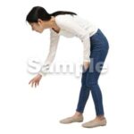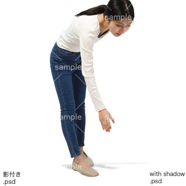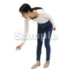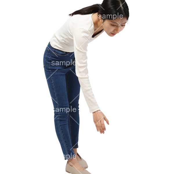 250909動作、日本人、女性、デニム、ジーンズ、スキニー、細身、、手を出す、拾う、下を向く、Action, Japanese, woman, denim, jeans, skinny, slender, reach out, pick up, looking dow