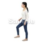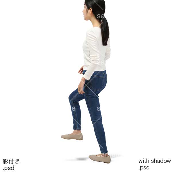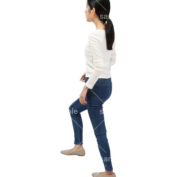 250909動作、日本人、女性、デニム、ジーンズ、スキニー、細身、階段を登る、一段上がる、Movement, Japanese, woman, denim, jeans, skinny, slim, climbing stairs, step up