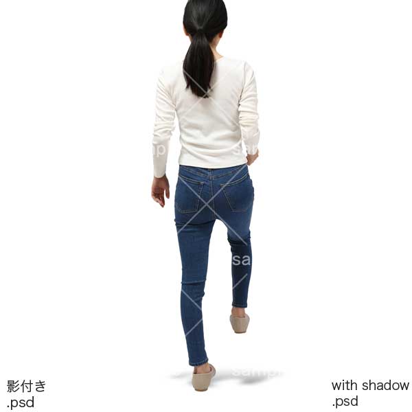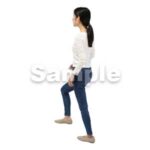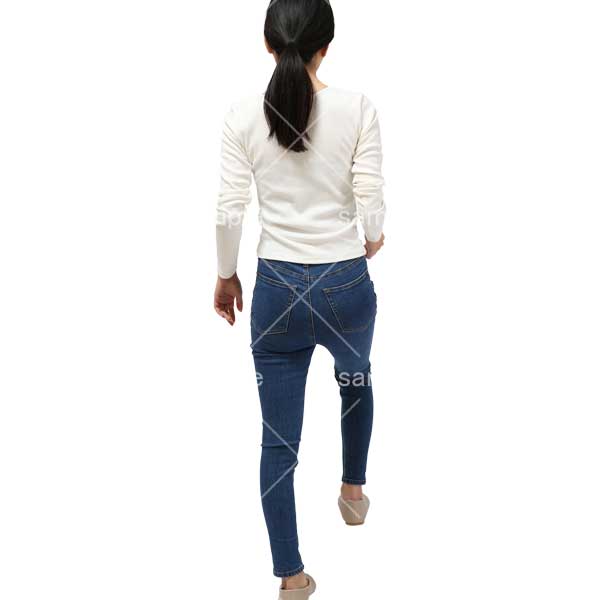 250909動作、日本人、女性、デニム、ジーンズ、スキニー、細身、階段を登る、一段上がる、Movement, Japanese, woman, denim, jeans, skinny, slim, climbing stairs, step up