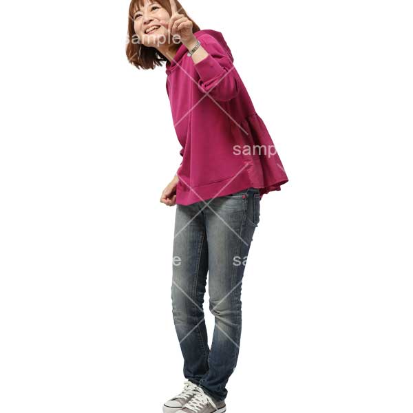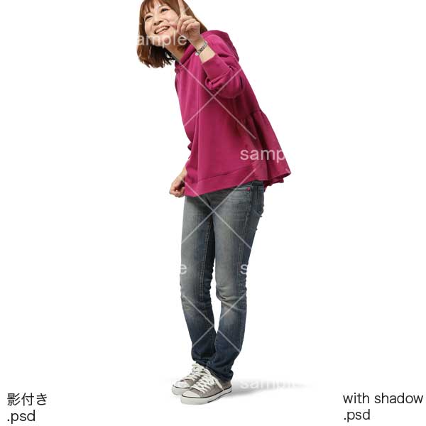 250909動作、日本人、女性、手を上げる、笑顔、パーカー、ピンク、デニム、ジーンズ、オーバーアクション、Action, Japanese, woman, raising hands, smiling, hoodie, pink, denim, jeans, overactio
