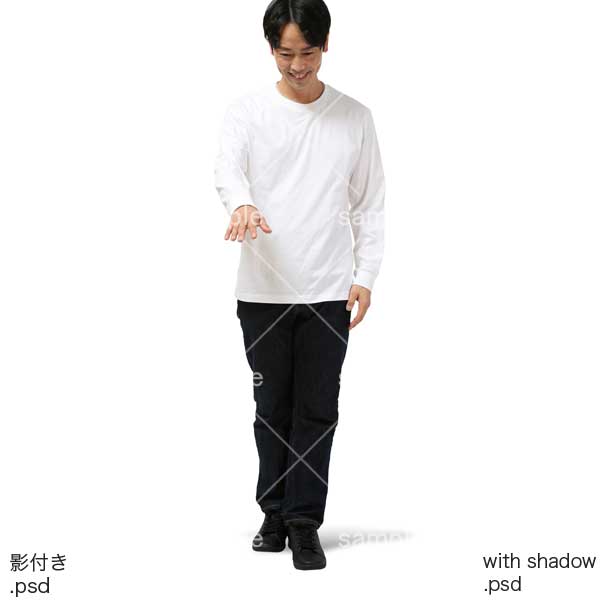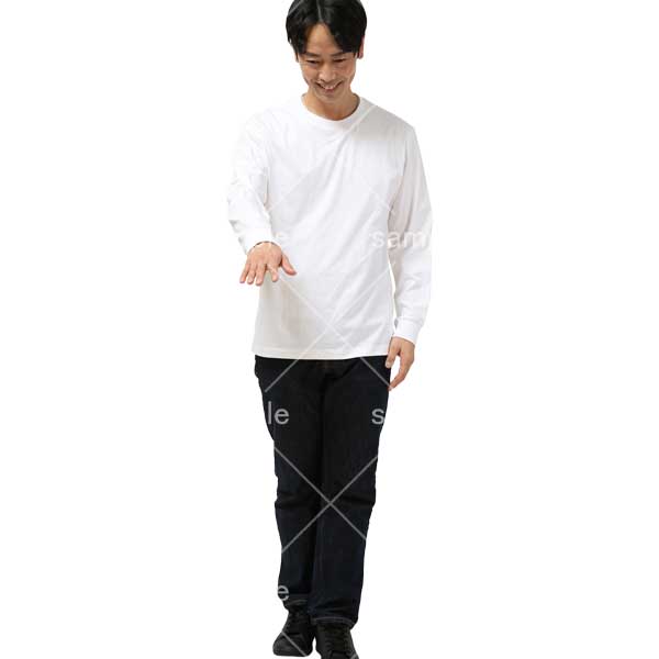 250909動作、日本人、男性、手を出す、下を見る、白色、黒色、モノトーン、シンプルファッション、Action, Japanese, man, reaching out, looking down, white, black, monotone, simple fashio