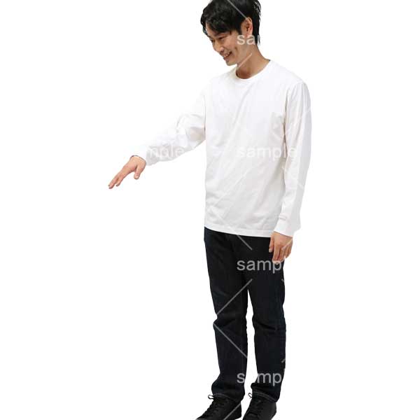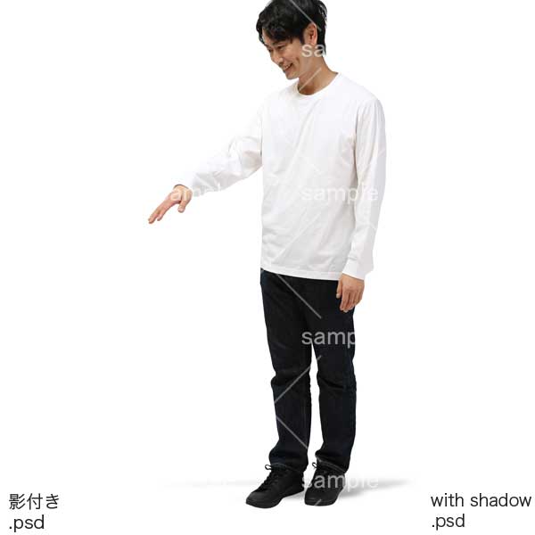 250909動作、日本人、男性、手を出す、下を見る、白色、黒色、モノトーン、シンプルファッション、Action, Japanese, man, reaching out, looking down, white, black, monotone, simple fashio