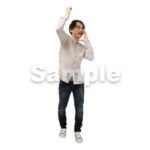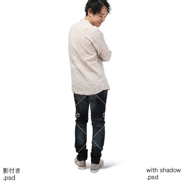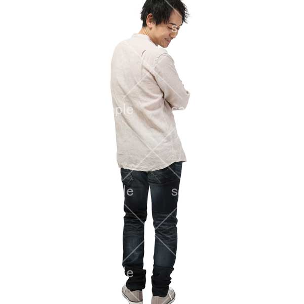 250909動作、日本人、男性、振り向く、振り返る、デニム、ジーンズ、腕を組む、腕組みする、Action, Japanese, man, turn around, look back, denim, jeans, arms crossed, arms crossed