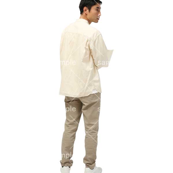 250909動作、日本人、男性、書類、振り向く、振り返る、ベージュ、アイボリー、落ち着いた色、Movement, Japanese, man, document, turning around, looking back, beige, ivory, calm colors