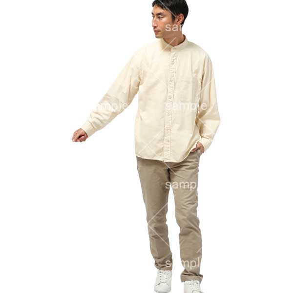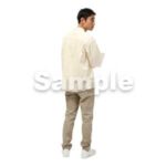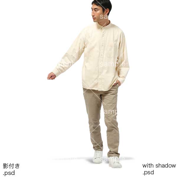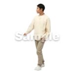 250909動作、日本人、男性、犬の散歩、ポケットに手を入れる、歩く、チノパン、ベージュ、アイボリー、Action, Japanese, man, walking dog, hands in pockets, walking, chinos, beige, ivory