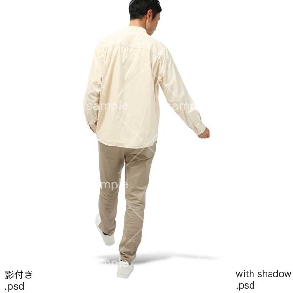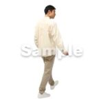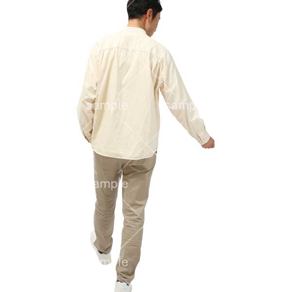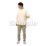 250909動作、日本人、男性、犬の散歩、ポケットに手を入れる、歩く、チノパン、ベージュ、アイボリー、Action, Japanese, man, walking dog, hands in pockets, walking, chinos, beige, ivory