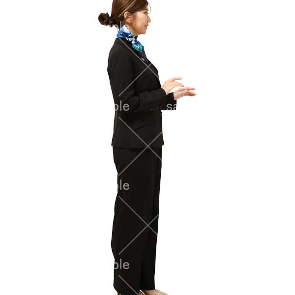 250601ビジネス女性、日本人、ビジネス女性、スーツ、スカーフ、空港案内、カウンター業務、シニヨン、立つ、キャビンアテンダント、Japanese, business woman, suit, scarf, airport guide, counter work, chignon, standing, cabin attendant