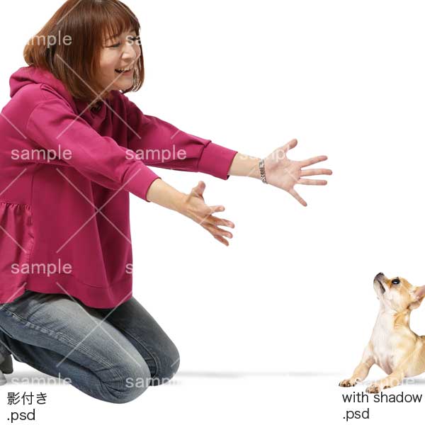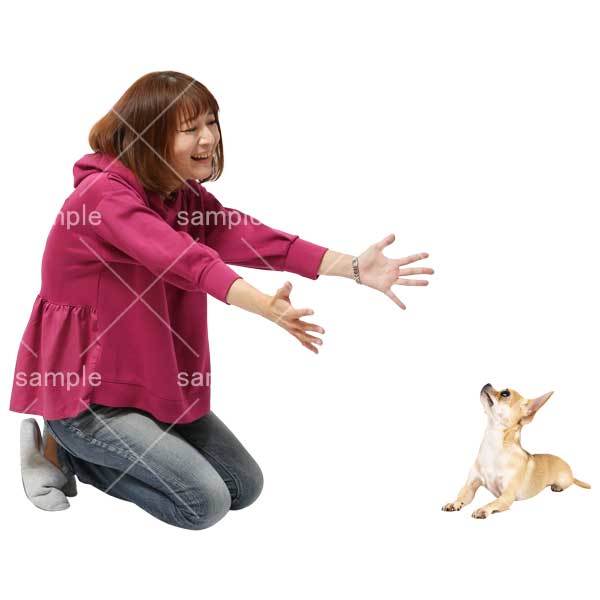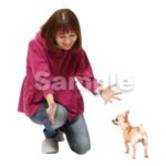 250811犬の散歩、日本人、動物、犬、猫、リード、女性、スリッパ、しゃがむ、チワワ、小型犬、Japanese, animals, dog, cat, leash, woman, slippers, crouching, Chihuahua, small dog