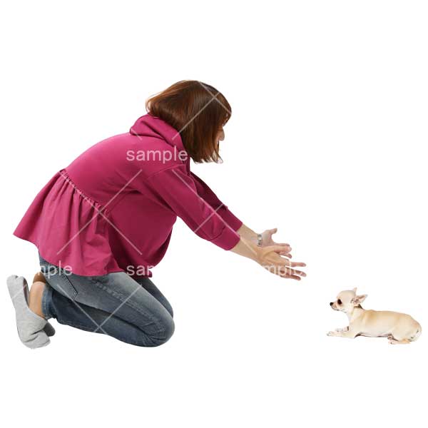 250811犬の散歩、日本人、動物、犬、猫、リード、女性、スリッパ、しゃがむ、チワワ、小型犬、Japanese, animals, dog, cat, leash, woman, slippers, crouching, Chihuahua, small dog