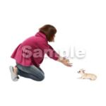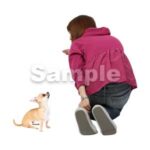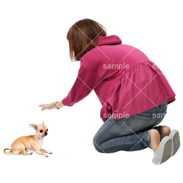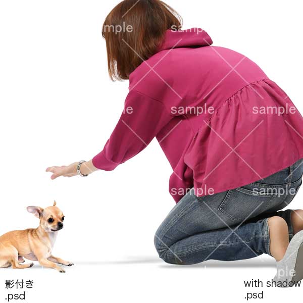 250811犬の散歩、日本人、動物、犬、猫、リード、女性、スリッパ、しゃがむ、チワワ、小型犬、Japanese, animals, dog, cat, leash, woman, slippers, crouching, Chihuahua, small dog