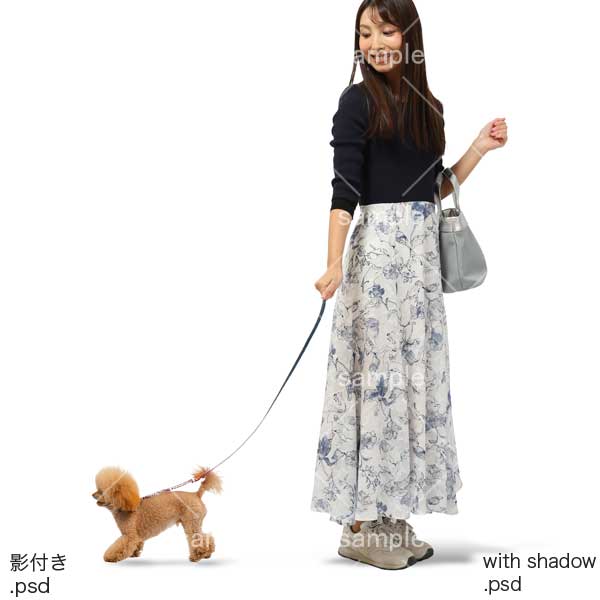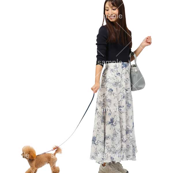 250811犬の散歩、日本人、動物、犬、猫、リード、女性、ロングスカート、ロングヘアー、茶色のトイプードル、Dog walking, Japanese, animals, dog, cat, leash, woman, long skirt, long hair, brown toy poodle