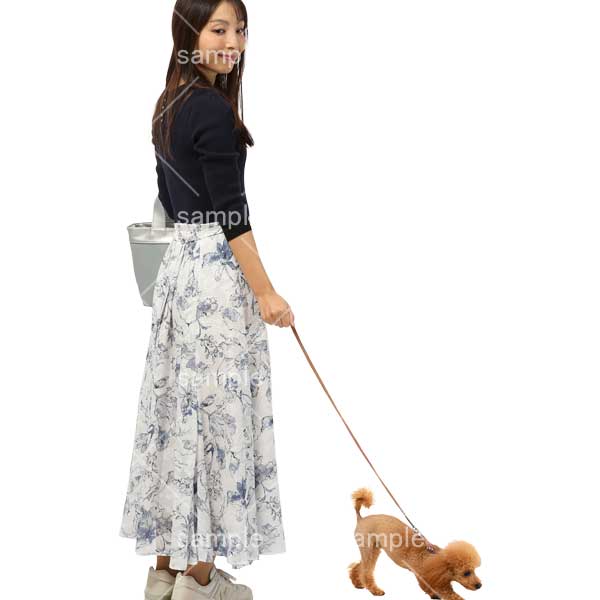 250811犬の散歩、日本人、動物、犬、猫、リード、女性、ロングスカート、ロングヘアー、茶色のトイプードル、Dog walking, Japanese, animals, dog, cat, leash, woman, long skirt, long hair, brown toy poodle