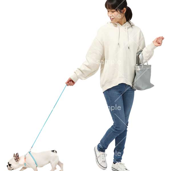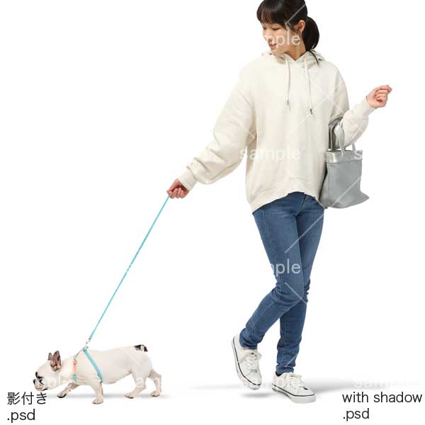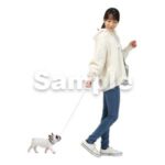 250811犬の散歩、日本人、動物、犬、猫、リード、女性、フレンチブルドッグ、デニム、パーカー、Dog walking, Japanese, animals, dog, cat, leash, woman, French bulldog, denim, hoodie
