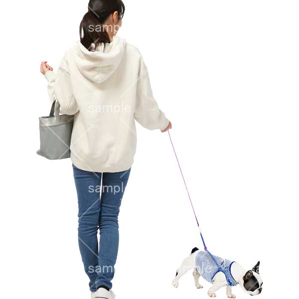 250811犬の散歩、日本人、動物、犬、猫、リード、女性、フレンチブルドッグ、デニム、パーカー、Dog walking, Japanese, animals, dog, cat, leash, woman, French bulldog, denim, hoodie