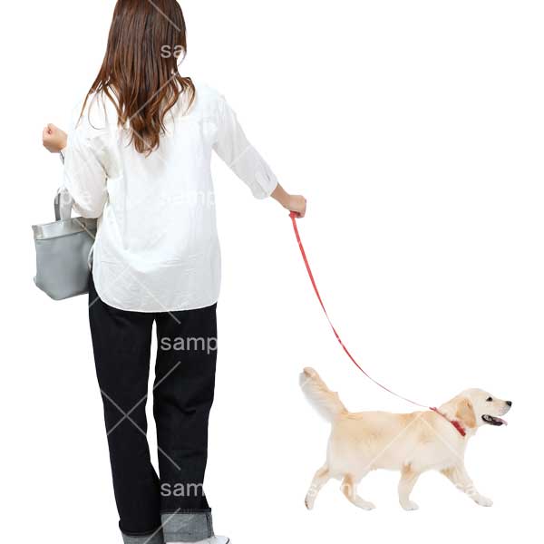 250811犬の散歩、日本人、動物、犬、猫、リード、女性、ゴールデンリトリバー、大型犬、デニム、Dog walking, Japanese, animals, dog, cat, leash, woman, golden retriever, large dog, denim