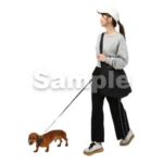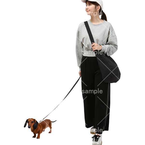 250811犬の散歩、日本人、動物、犬、猫、リード、女性、ミニチュアダックスフンド、帽子、Dog walking, Japanese, animals, dog, cat, leash, woman, miniature dachshund, hat