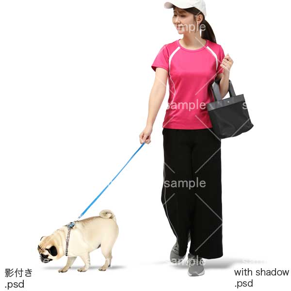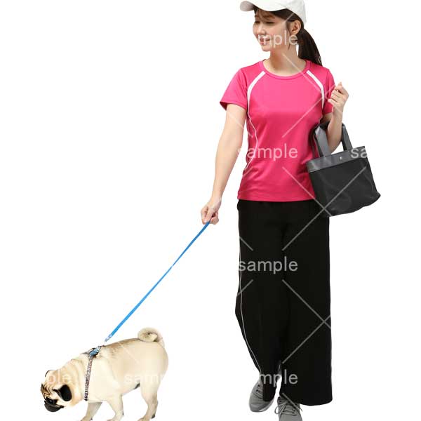 250811犬の散歩、日本人、動物、犬、猫、リード、女性、パグ、半袖、スポーツ、Dog walking, Japanese, animals, dog, cat, leash, woman, pug, short sleeves, sports