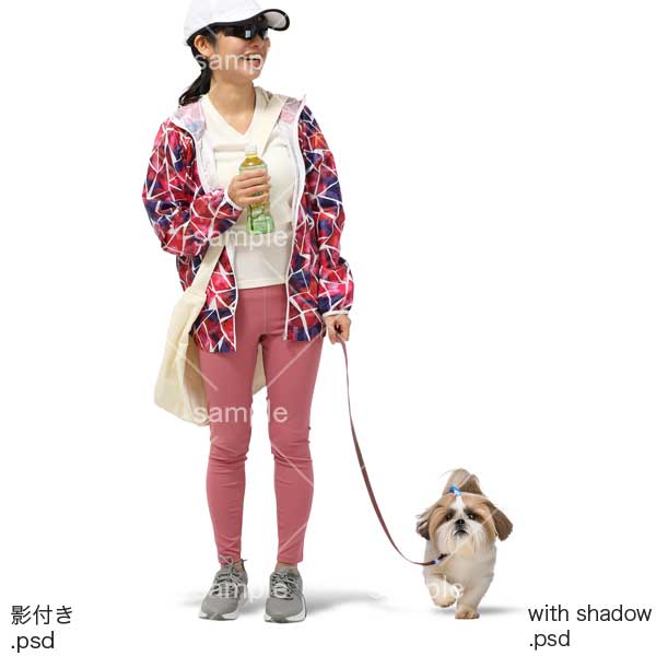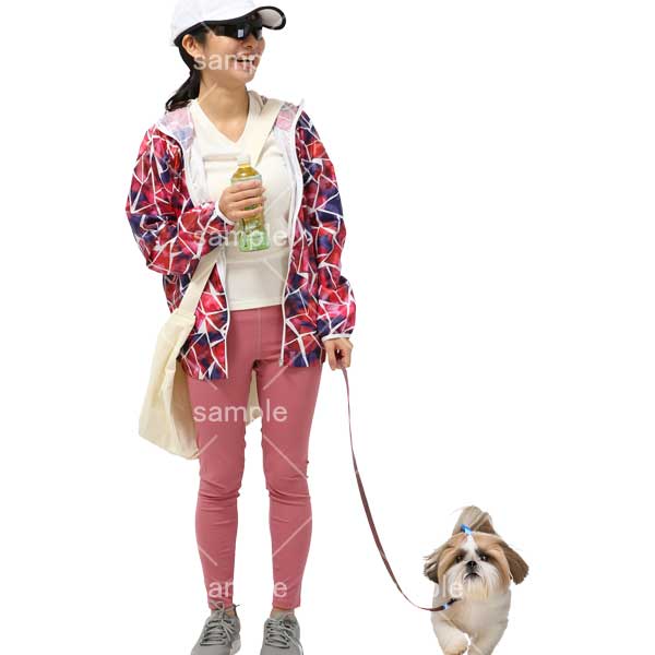250811犬の散歩、日本人、動物、犬、猫、リード、女性、シーズー犬、帽子、スポーツ、小型犬、Dog walking, Japanese, animals, dog, cat, leash, woman, Shih Tzu, hat, sports, small dog