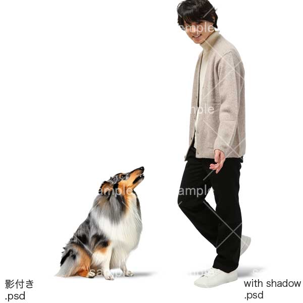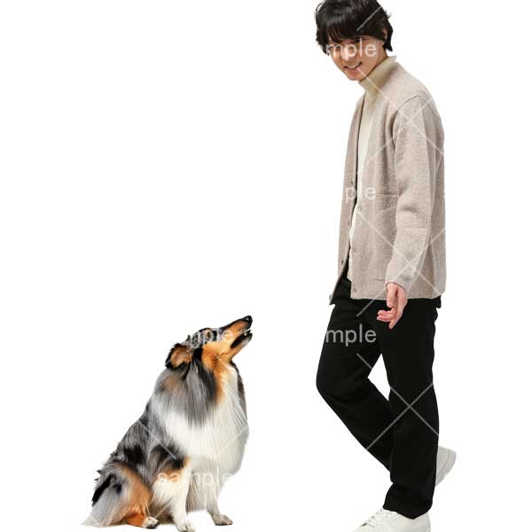 250811犬の散歩、日本人、動物、犬、猫、リード、男性、シェットランドシープドッグ、Dog walking, Japanese, animals, dog, cat, leash, man, Shetland Sheepdog