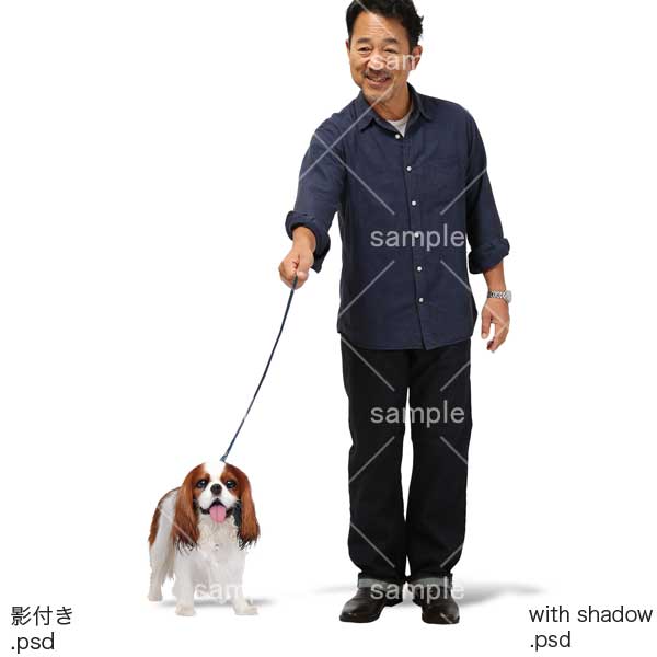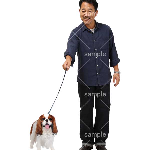 250811犬の散歩、日本人、動物、犬、猫、リード、男性、キャバリア、中年、50代、おじさん、Dog walking, Japanese, animal, dog, cat, leash, man, Cavalier, middle-aged, 50s, uncle