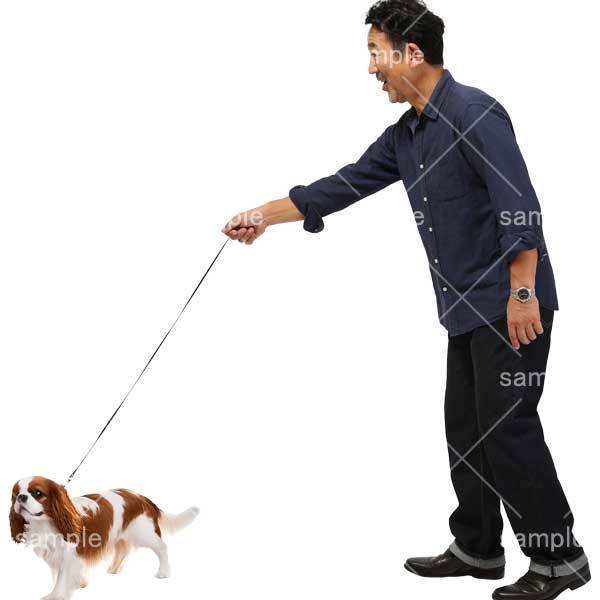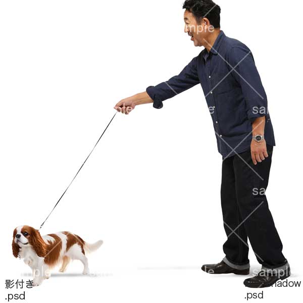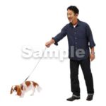 250811犬の散歩、日本人、動物、犬、猫、リード、男性、キャバリア、中年、50代、おじさん、Dog walking, Japanese, animal, dog, cat, leash, man, Cavalier, middle-aged, 50s, uncle
