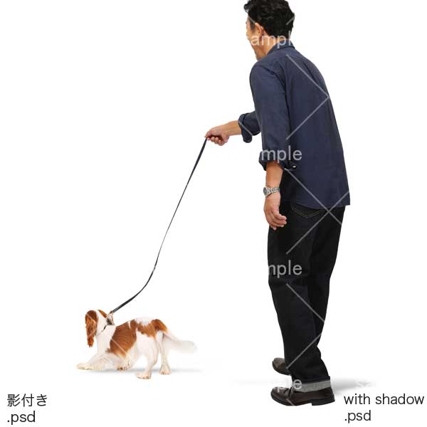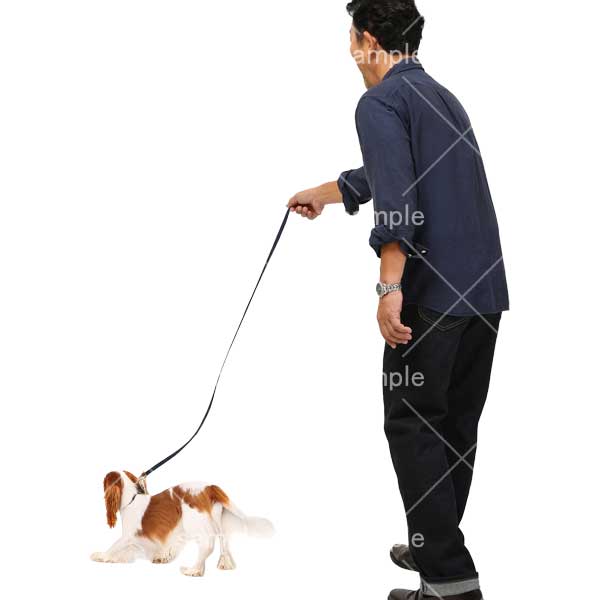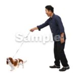 250811犬の散歩、日本人、動物、犬、猫、リード、男性、キャバリア、中年、50代、おじさん、Dog walking, Japanese, animal, dog, cat, leash, man, Cavalier, middle-aged, 50s, uncle