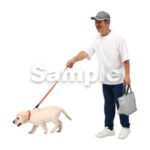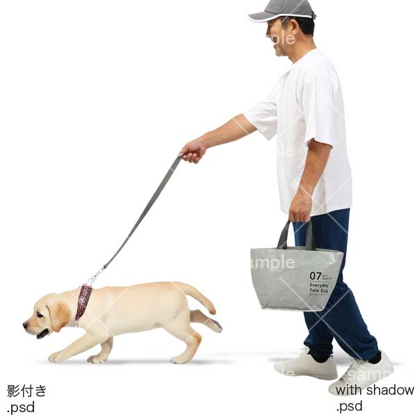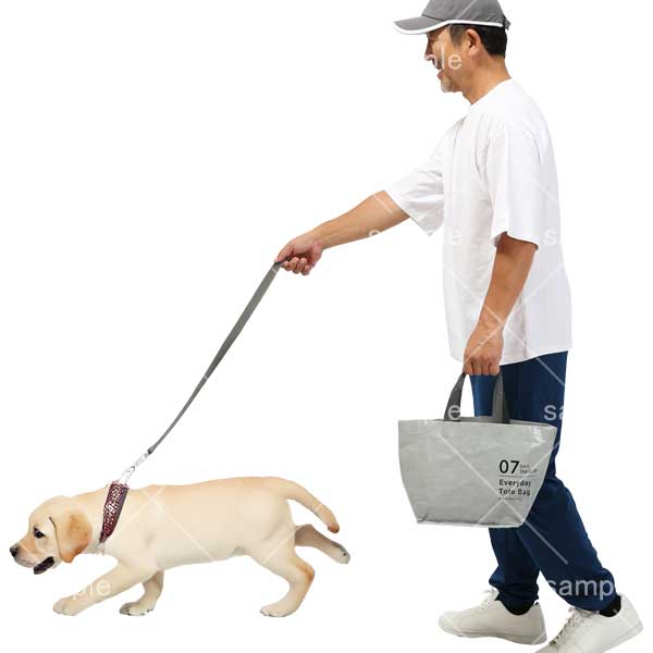 250811犬の散歩、日本人、動物、犬、猫、リード、男性、中高年、帽子、半袖、ラブラドールレトリバー、Dog walking, Japanese, animal, dog, cat, leash, man, middle-aged, hat, short sleeves, Labrador retriever
