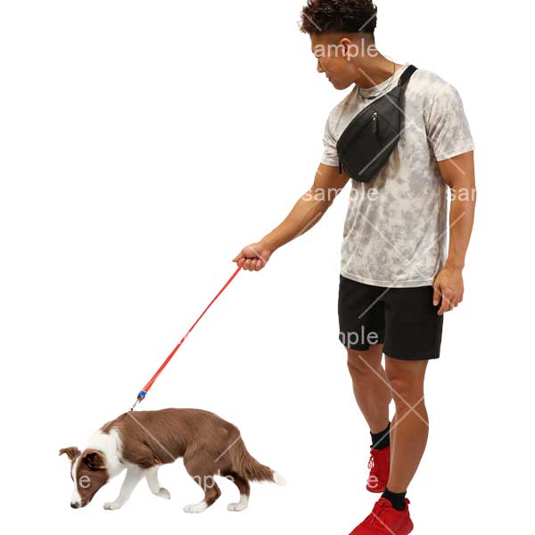 250811犬の散歩、日本人、動物、犬、猫、リード、男性、マッチョ、ボーダーコリー、Dog walking, Japanese, animals, dog, cat, leash, man, macho, border collie
