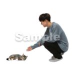 250811犬の散歩、日本人、動物、犬、猫、リード、男性、猫、スリッパ、遊ぶ、寝転ぶ、Japanese, animals, dog, cat, leash, man, cat, slippers, playing, lying down/h6>