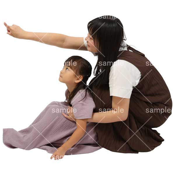 251001親子、幼児、母子、遊ぶ、立つ、幼児、女の子、2人、しゃがむ、上を指さす、Parent and child, toddler, mother and child, playing, standing, toddler, girl, two people, crouching, pointing up