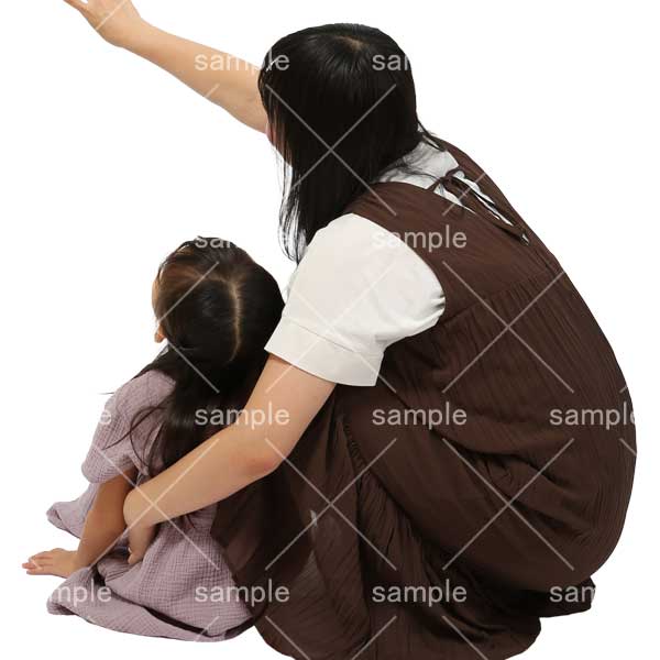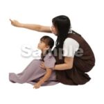 251001親子、幼児、母子、遊ぶ、立つ、幼児、女の子、2人、しゃがむ、上を指さす、Parent and child, toddler, mother and child, playing, standing, toddler, girl, two people, crouching, pointing up