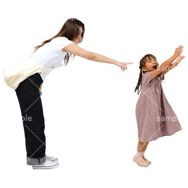 251001親子、幼児、母子、遊ぶ、立つ、幼児、女の子、2人、下を指さす、見る、Parent and child, toddler, mother and child, playing, standing, toddler, girl, two people, pointing down, looking