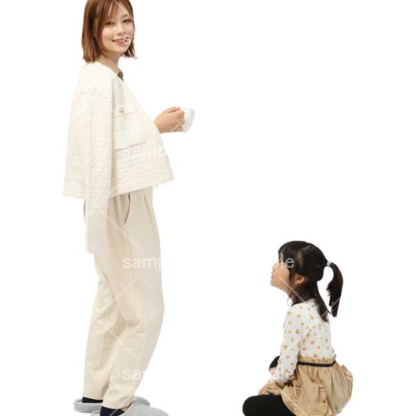 251001親子、幼児、母子、立つ、女の子、2人、小学生、室内、スリッパ、くつろぐ、Parent and child, toddler, mother and child, standing, girl, two people, elementary school student, indoors, slippers, relaxing