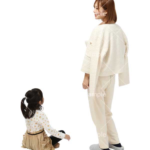 251001親子、幼児、母子、立つ、女の子、2人、小学生、室内、スリッパ、くつろぐ、Parent and child, toddler, mother and child, standing, girl, two people, elementary school student, indoors, slippers, relaxing