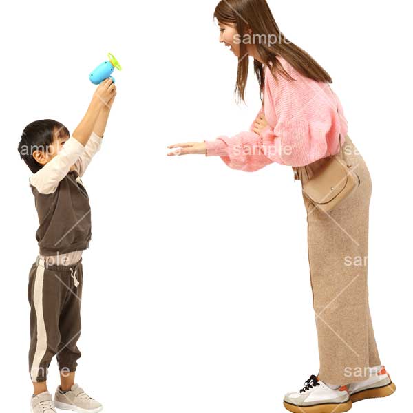 251001親子、幼児、母子、立つ、2人、幼児、男の子、手を出す、ピンク、遊ぶ、おもちゃ、Parent and child, toddler, mother and child, standing, two people, toddler, boy, reaching out, pink, playing, toy