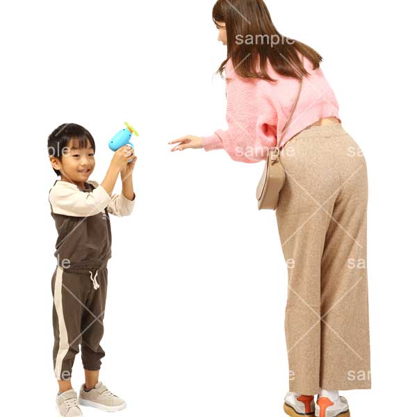 251001親子、幼児、母子、立つ、2人、幼児、男の子、手を出す、ピンク、遊ぶ、おもちゃ、Parent and child, toddler, mother and child, standing, two people, toddler, boy, reaching out, pink, playing, toy